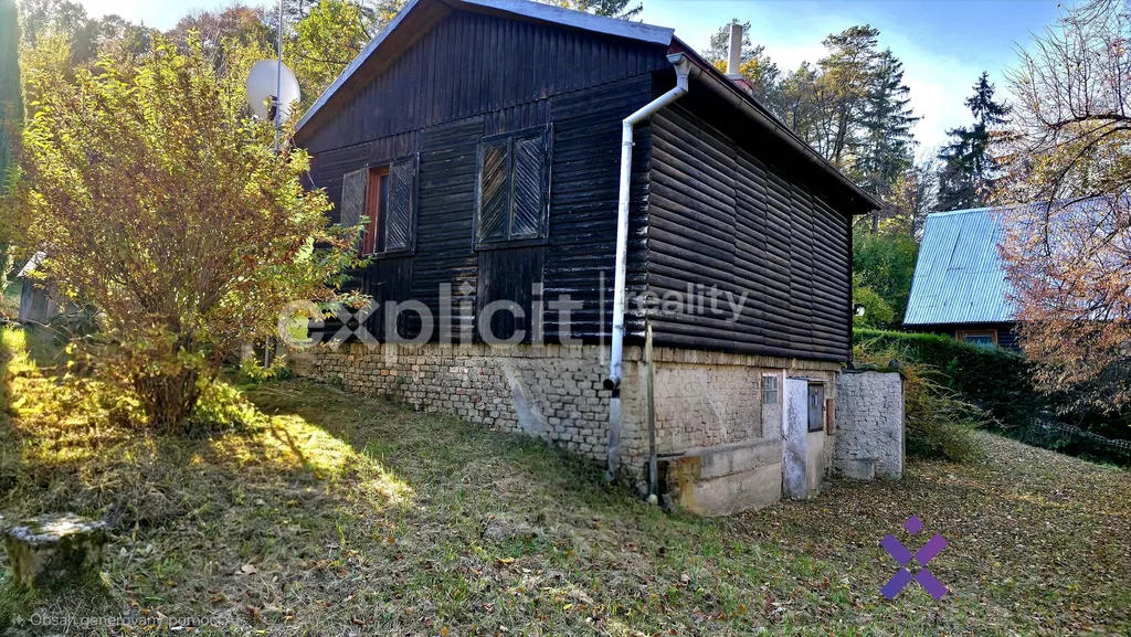 Chata o zastavěné ploše 99 m² s částečným podsklepením stojí na slunném pozemku o velikosti 695 m².