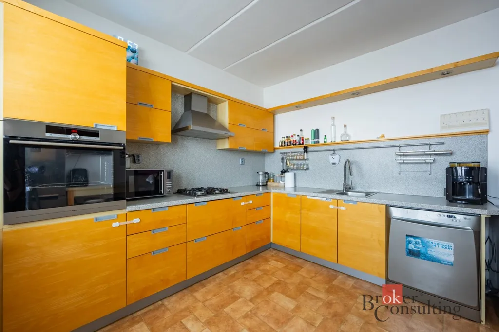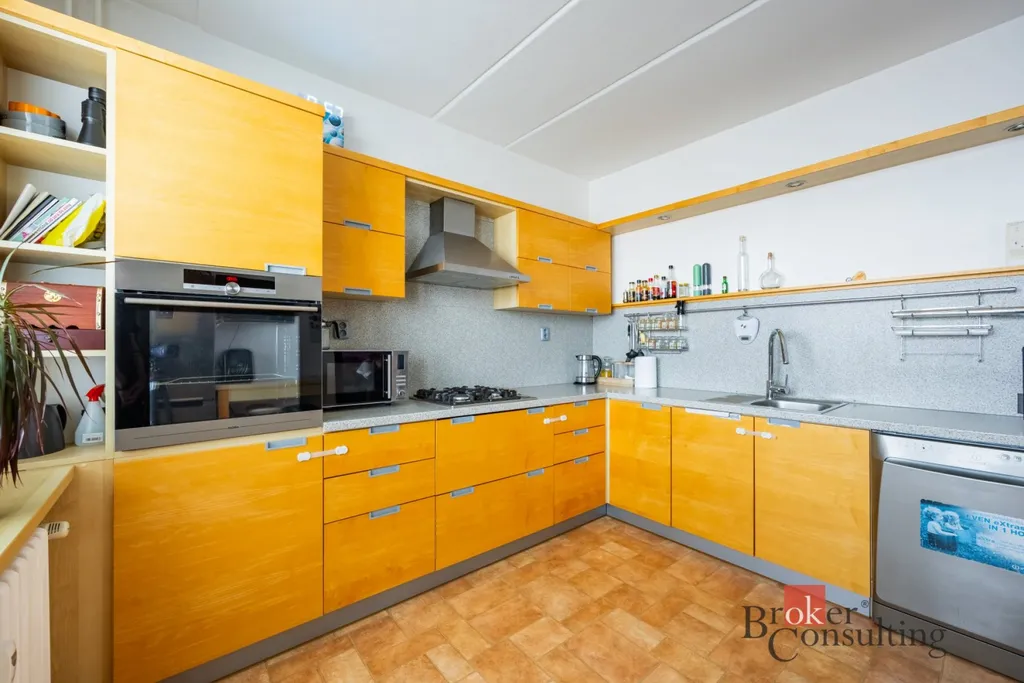 Dominantou bytu je velký a světlý obývací pokoj s jídelním koutem, který nabízí dostatek prostoru pro rodinná setkání i odpočinek. Na něj navazuje prostorná kuchyně s velkou kuchyňskou linkou, poskytující dostatek prostoru pro každodenní vaření.