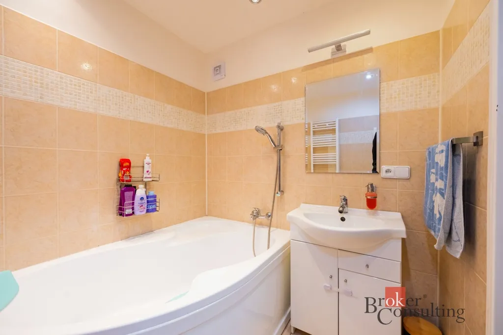 Velkou předností bytu je koupelna s rohovou vanou, která nabízí příjemné místo pro relaxaci po náročném dni. Samozřejmostí je samostatné WC, což výrazně zvyšuje komfort při každodenním fungování domácnosti.