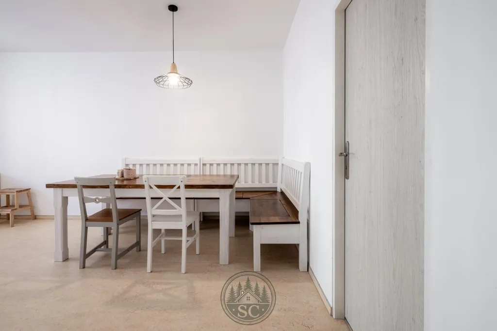 Byt nabízí dostatek prostoru pro rodinu i přátele a díky svému uspořádání skvěle funguje jako horský apartmán pro celoroční využití i jako zajímavá investice, například ke krátkodobému pronájmu.