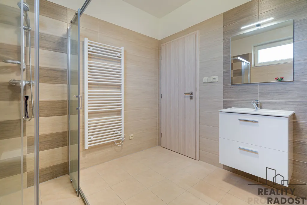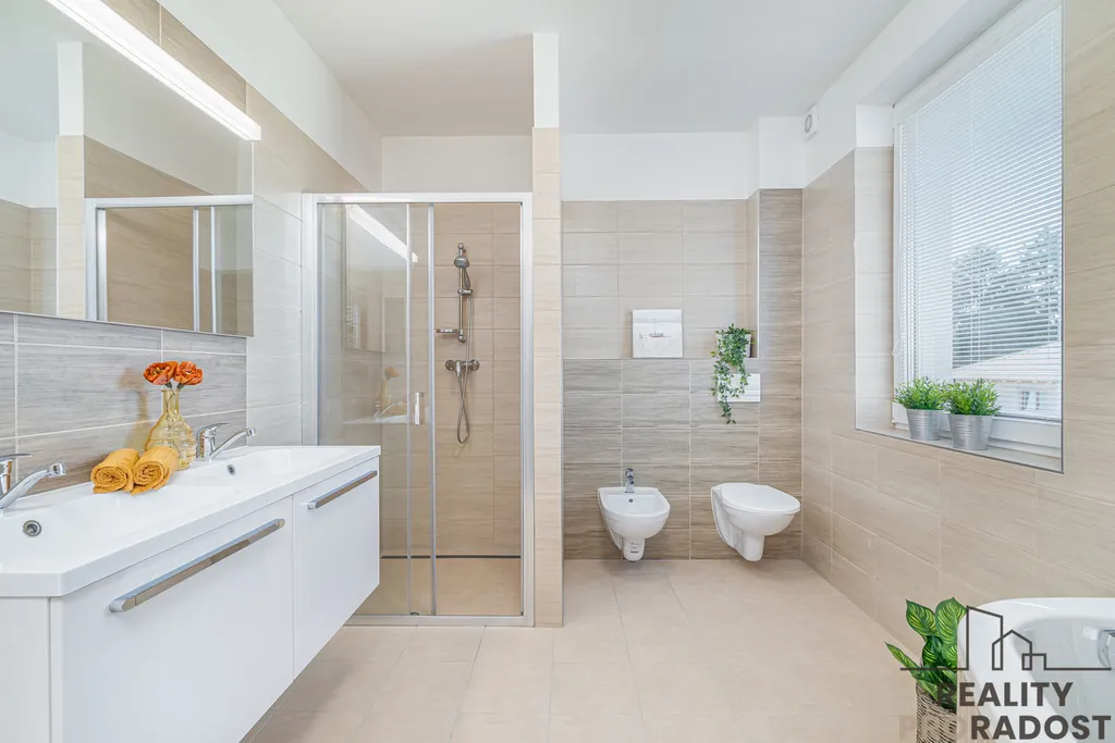 Podlahy jsou vinylové + dlažba. V oknech jsou sítě proti hmyzu.
