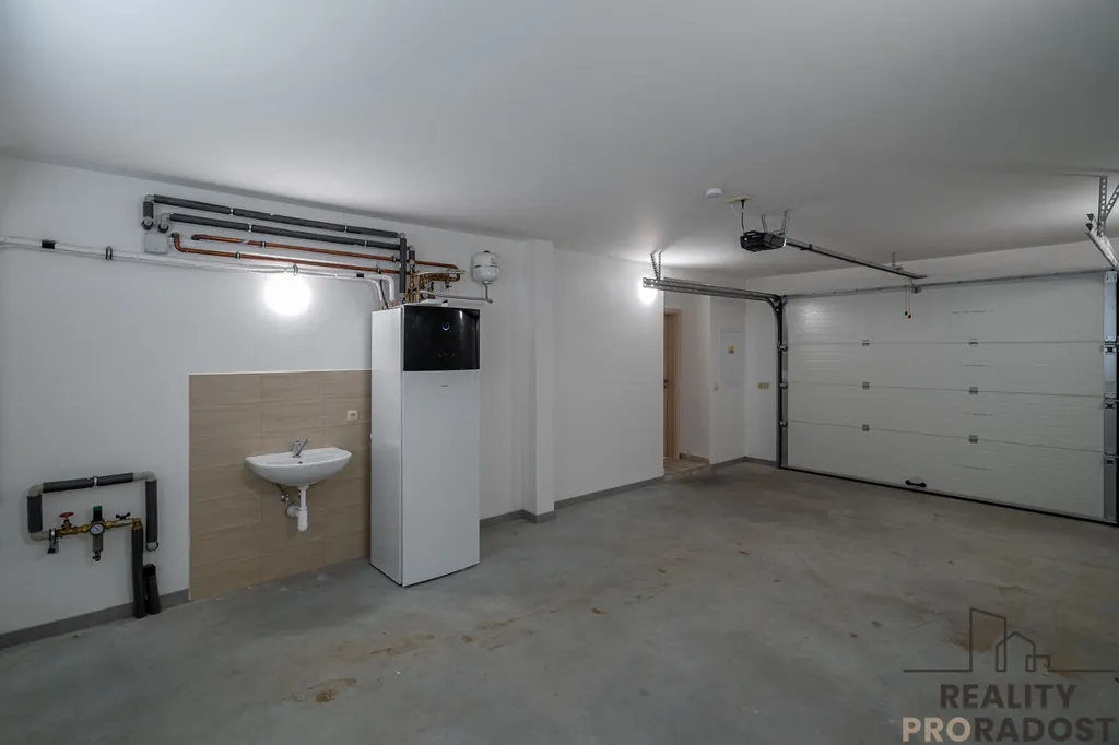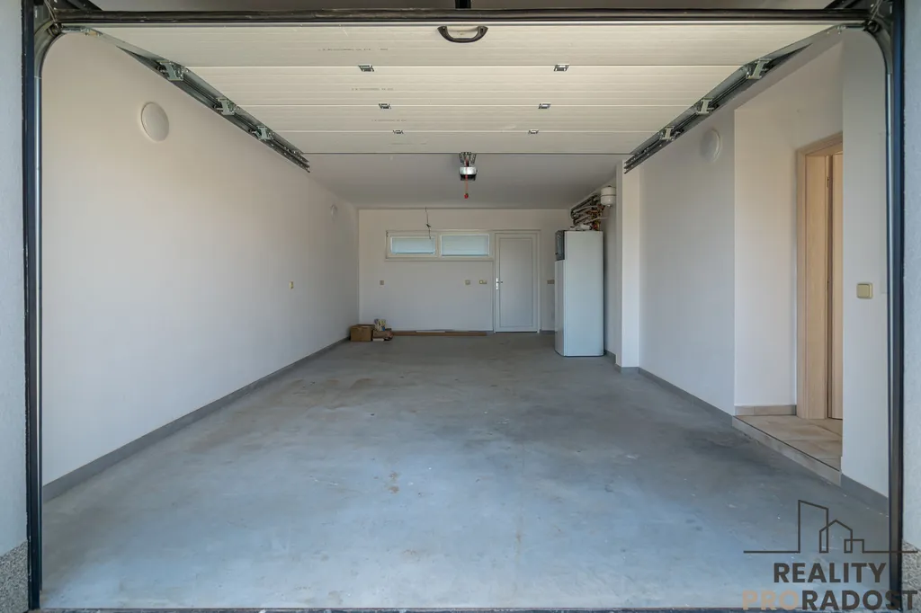 Parkování 1 auto v garáží, 1 auto před garáží, další případně podél cesty.
