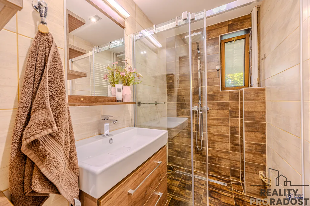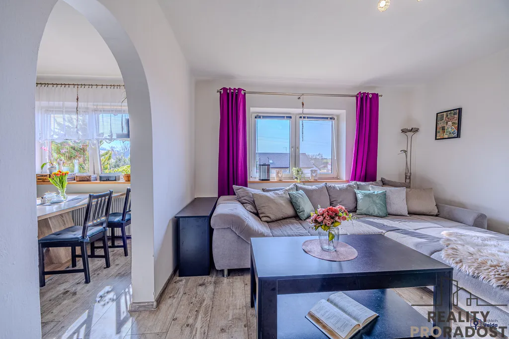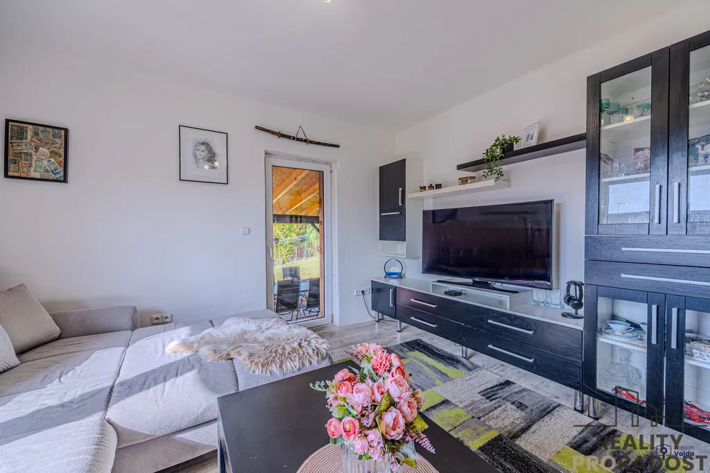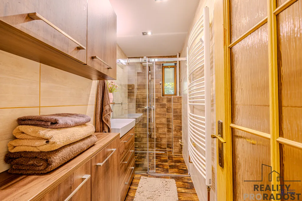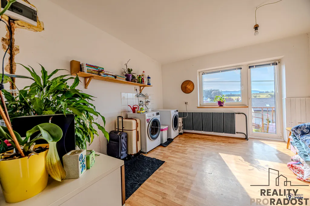 Obě nadzemní podlaží disponují bytovou jednotkou 3+1 + komora + sociální zázemí, kdy v současné době rodina obývá celý dům, jeden pokoj v přízemí slouží jako šatna a jeden pokoj v 1.patře slouží jako prádelna. Při vhodné rekonstrukci a dodělání kuchyně v 1.patře, je však možné využít rodinný dům jako dvougenerační. Z obývacího pokoje v přízemí je vstup na krytou terasu, kterou si jistě užijete od brzkých jarních do pozdních letních dní, stejně jako zahradu, kde zůstává dětský domeček, trampolína a bazén.