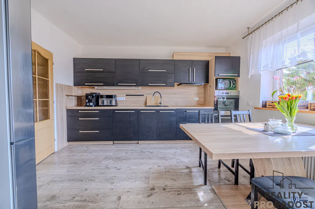 Obě nadzemní podlaží disponují bytovou jednotkou 3+1 + komora + sociální zázemí, kdy v současné době rodina obývá celý dům, jeden pokoj v přízemí slouží jako šatna a jeden pokoj v 1.patře slouží jako prádelna. Při vhodné rekonstrukci a dodělání kuchyně v 1.patře, je však možné využít rodinný dům jako dvougenerační. Z obývacího pokoje v přízemí je vstup na krytou terasu, kterou si jistě užijete od brzkých jarních do pozdních letních dní, stejně jako zahradu, kde zůstává dětský domeček, trampolína a bazén.