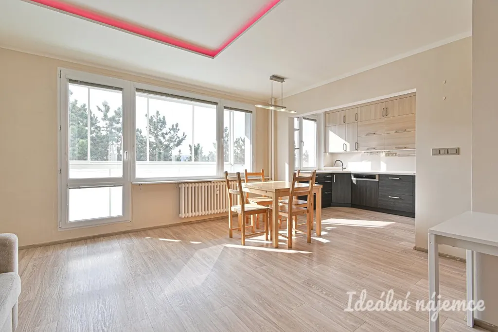 Byt se nabízí vybavený dle fotografií. Kuchyňská linka je prostorná a nabízí dostatek pracovního i úložného místa. Součástí kuchyně je také jídelní kout. Obývací pokoj působí velmi světlým a otevřeným dojmem díky velkým oknům. Další dva pokoje mohou slouží jako ložnice a dětský pokoj. Koupelna je vybavena vanou a umyvadlem, toaleta je samostatně.
