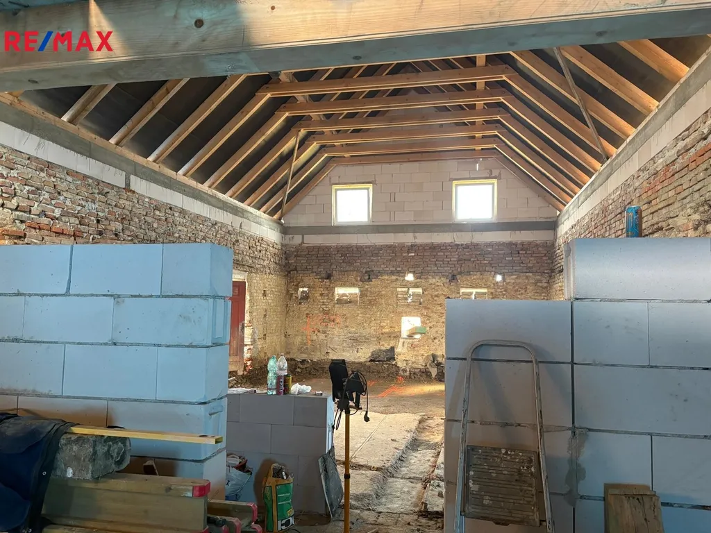 Dům je v současné době ve fázi rekonstrukce. Byla zde kompletně zhotovena nová střecha včetně krovů a střešní krytiny, což představuje významnou investici do budoucího bydlení. Interiér je aktuálně bez příček, takže nový majitel má ideální možnost navrhnout si dispozici domu zcela podle svých představ a přizpůsobit prostor vlastním potřebám.