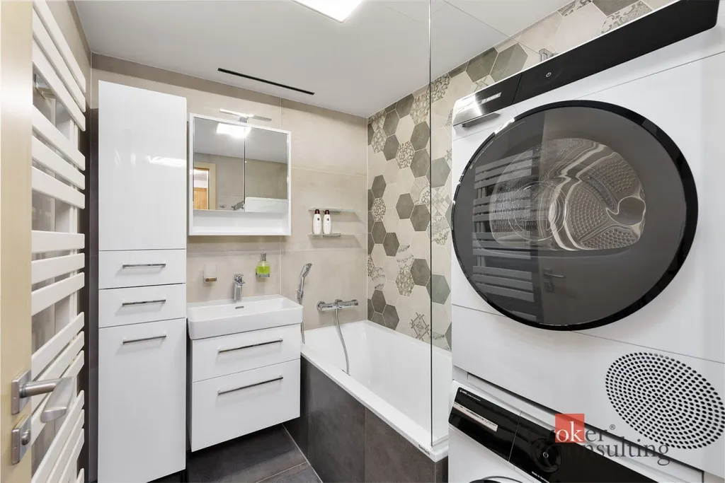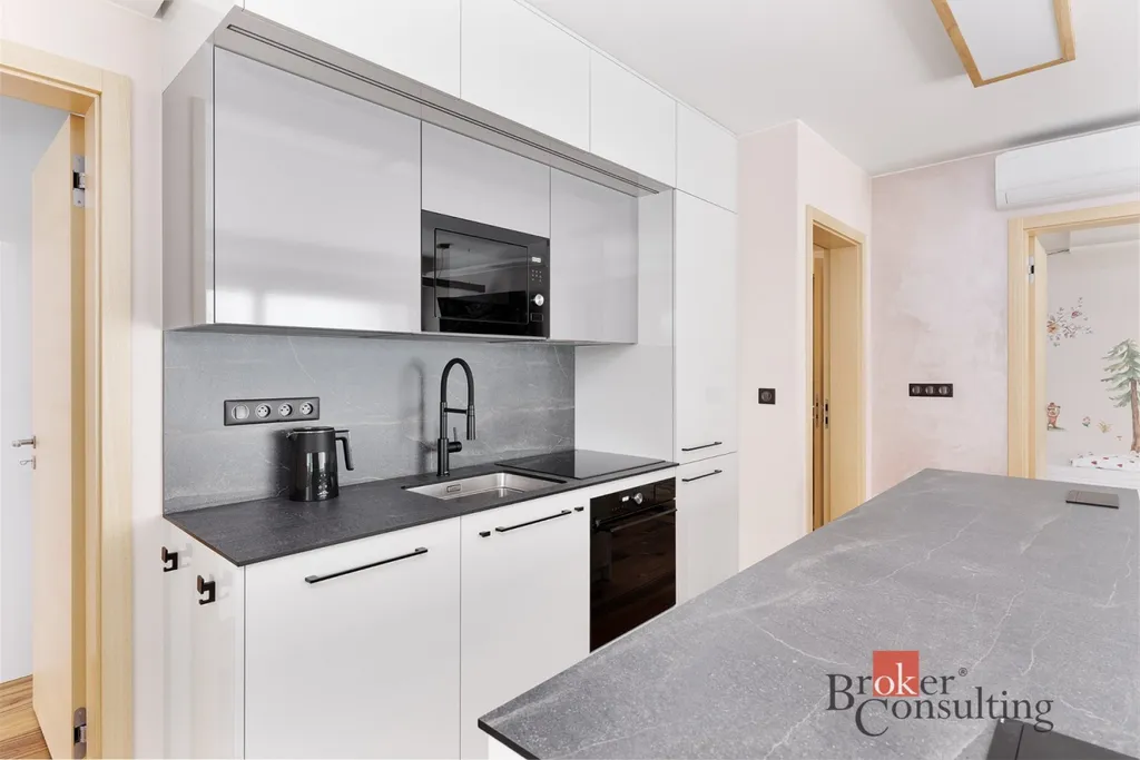 Dispozice 4kk nabízí 100 m² promyšleného prostoru + 2 balkony. Možnost použít odděleně jako 3kk a 1kk s vlastním vchodem, kuchyňskou linkou, koupelnou a toaletou. Vhodné pro krátkodobé pronájmy. Kompletně luxusně vybaveno do posledního detailu. Podlahové vytápění, předokenní žaluzie, dřevěné podlahy (bahenní dub), vestavné skříně v dýze a plně zařízené koupelny s pračkou i sušičkou vytvářejí komfort, který oceníte v každém ročním období.