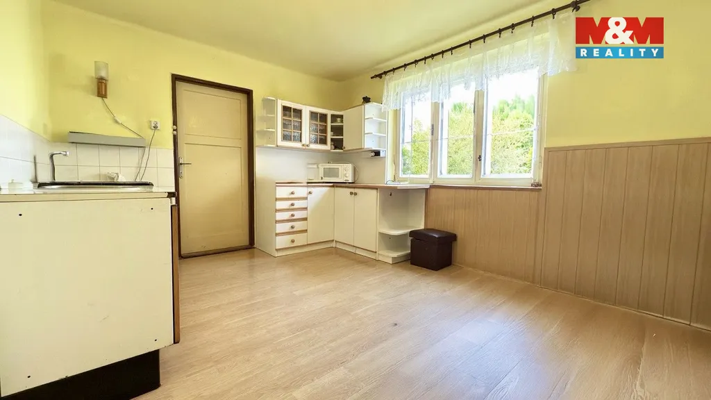 Předmětem prodeje je i chalupa ze 20. let 20. stolení na stejném pozemku, která má užitnou plochu cca 74 m² a dispozici 1+1. Tudíž nabízíme prodej dvou nemovitostí za jednu cenu.