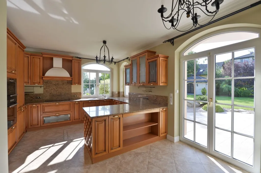Dominantou domu je velkorysý obývací pokoj s krbem a přímým vstupem na novou terasu propojenou se zahradou, která poskytuje maximální soukromí a prostor pro relaxaci. Moderní kuchyň je plně vybavena kvalitními spotřebiči.