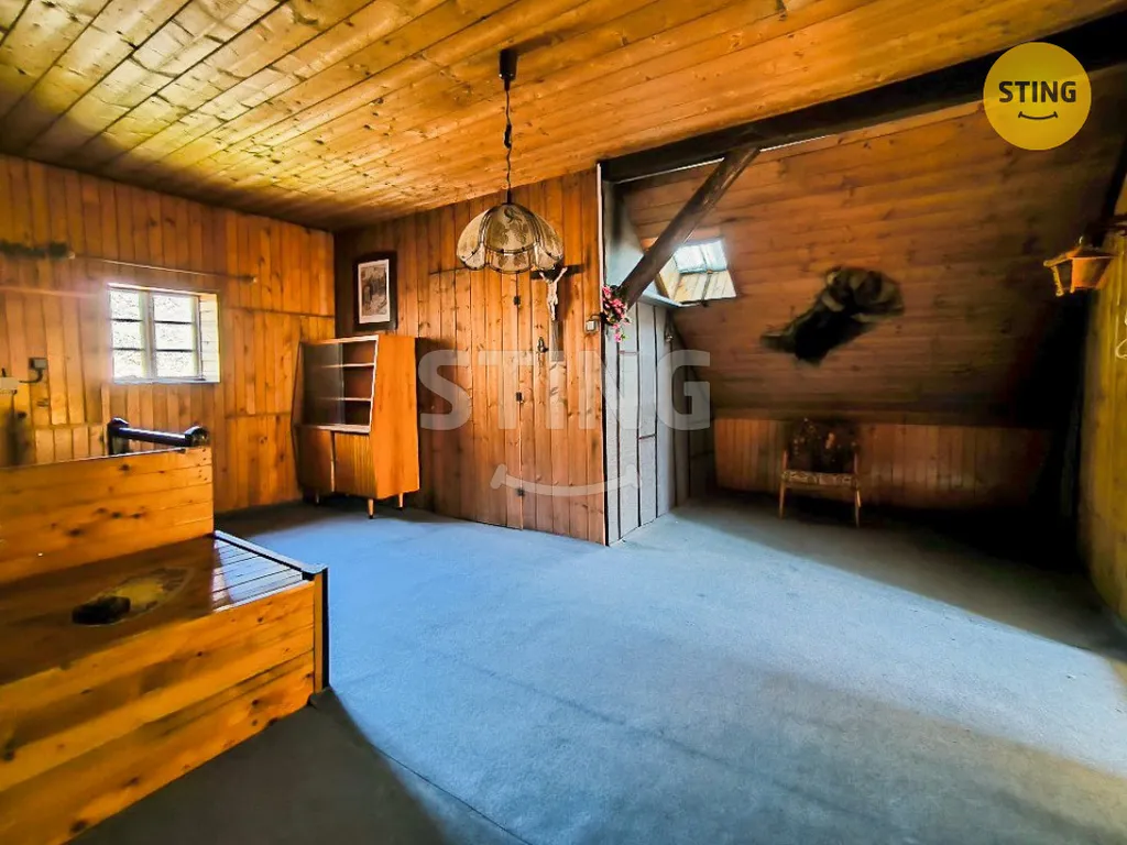 Ve 2. NP, do kterého se dostaneme dřevěnými schody vedoucími z předsíně, se nachází jeden prostorný pokoj a podkroví, ve kterém je možné dobudovat další pokoj.