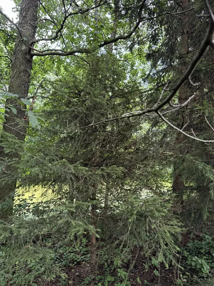 Pozemek je téměř na rovině, pěkný borovicový les (76 let).