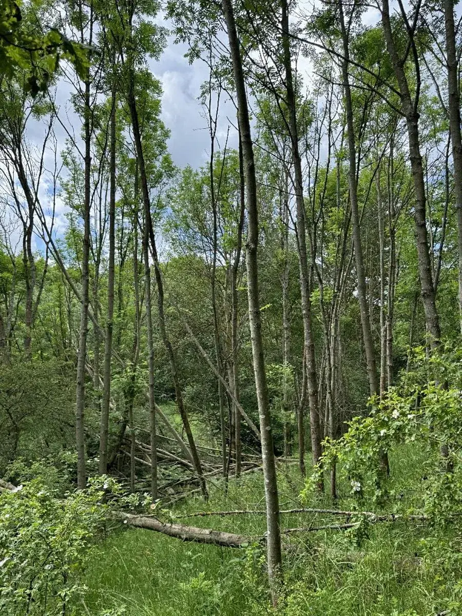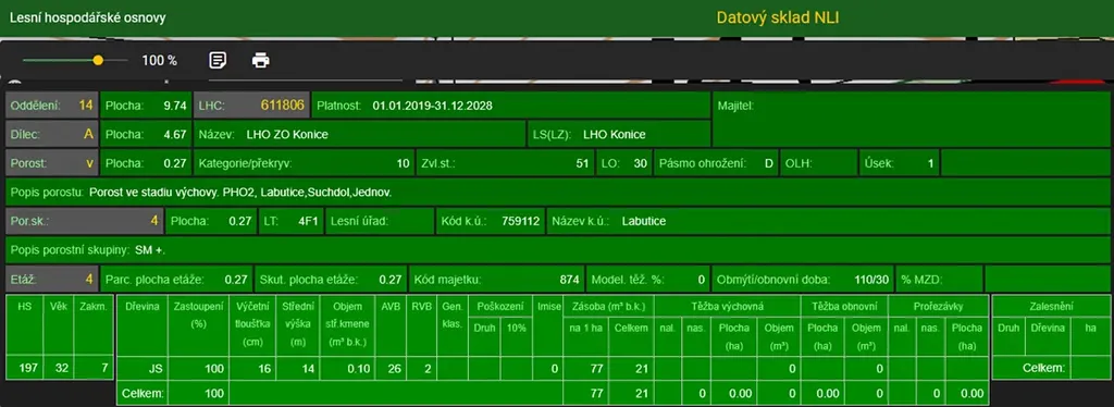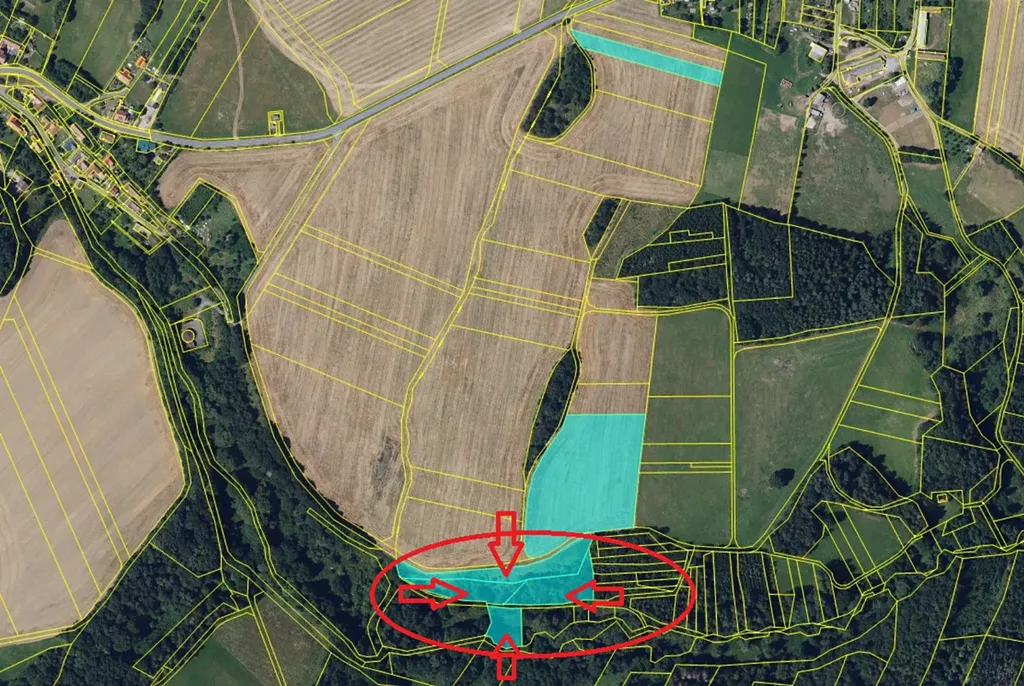 - p.č. 212 vedená jako lesní pozemek o celkové výměře 2 679 m2 z toho vlastníme podíl 1/3 tedy 893 m2 (stáří lesa 39 let, zastoupení dřevin jasan).