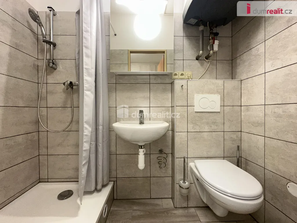 Koupelna: Moderní sprchový kout se společnou toaletou.