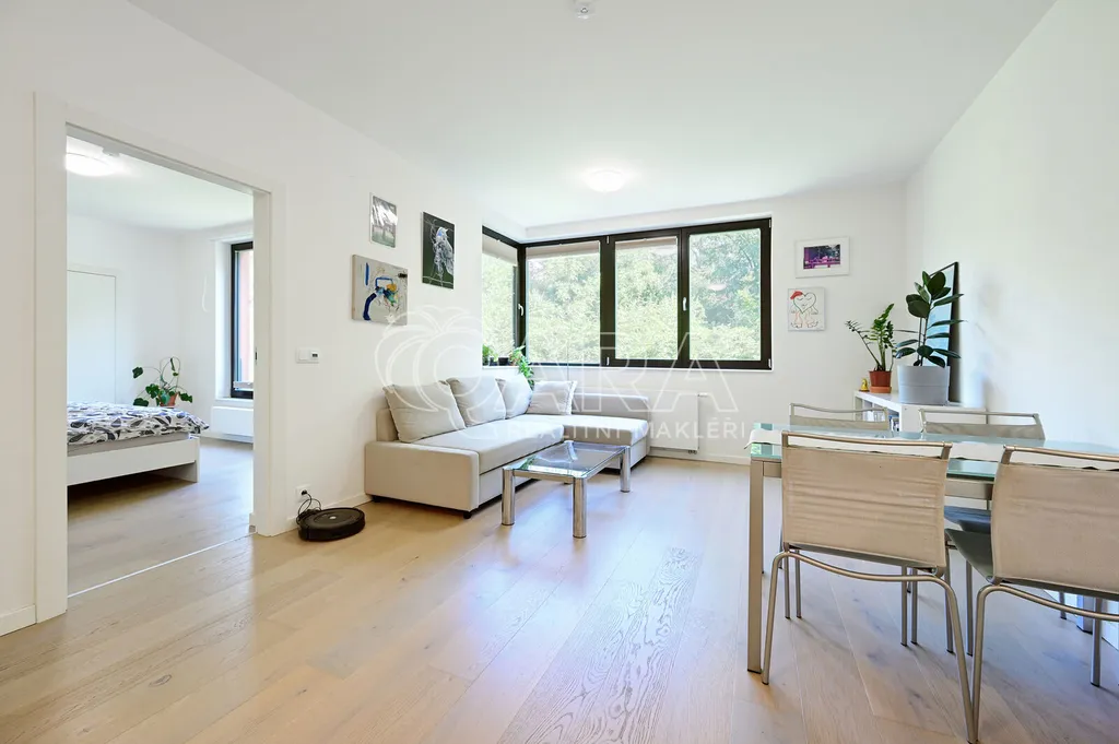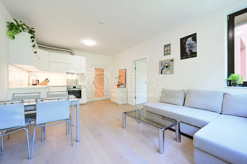 Dovolte mi představit Vám moderní, plně zařízený byt o dispozici 2+kk a rozloze 47,1 m², k němuž náleží parkovací stání v zakladači přímo v bytovém domě.