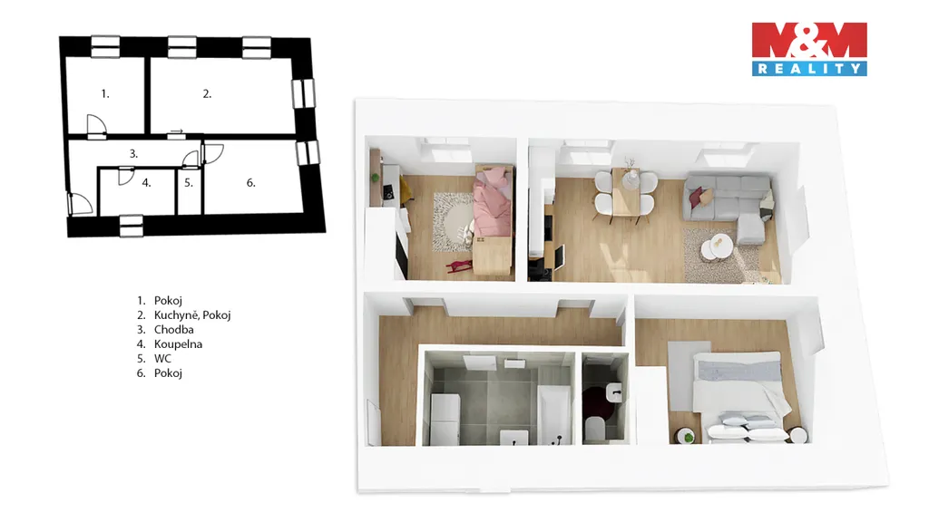 Byt disponuje světlými a prakticky řešenými místnostmi, které poskytují komfortní bydlení pro rodinu i jednotlivce. Velkou výhodou je atraktivní poloha v centru obce, kde máte veškerou občanskou vybavenost v docházkové vzdálenosti.
