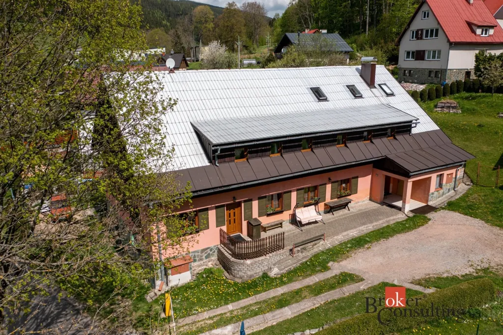 Nabízíme k prodeji výjimečně prostorný dům v malebném horském městečku Horní Maršov – místě, kde se snoubí klid, příroda a celoroční turistický ruch. Na první pohled působí jako rodinný dům s velkorysým zázemím. Při bližším pohledu ale zjistíte, že nabízí mnohem víc. Může se stát skutečně komfortním vícegeneračním bydlením, chalupou pro velkou rodinu nebo chytrou investicí s možností pravidelného příjmu z ubytování. Dům má 3 nadzemní podlaží a 1 podzemní podlaží, celkovou kapacitu až 38 lůžek a prošel rozsáhlou rekonstrukcí v roce 2010 (nové rozvody topení, elektroinstalace, vody, kompletní koupelny, plastová okna a dveře, komín, terasy, úpravy pozemku a další). Kolaudace proběhla v roce 1987.