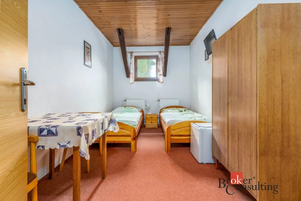 V přízemí se nachází prostorná jídelna s barem, kuchyně, sklady, zázemí, 2× WC, dále samostatný apartmán (cca 40 m², 2 pokoje, předsíň, koupelna). Nechybí kotelna, lyžárna, dílna/sklad a technické prostory. Ve druhém nadzemní podlaž jsou pokoje, které lze využít jako ložnice, dětské pokoje či hostinské pokoje, sklad a sušárna. Ve třetím nadzemní podlaží je apartmán (cca 40 m²) a navazující půdní prostor s potenciálem dalšího využití.