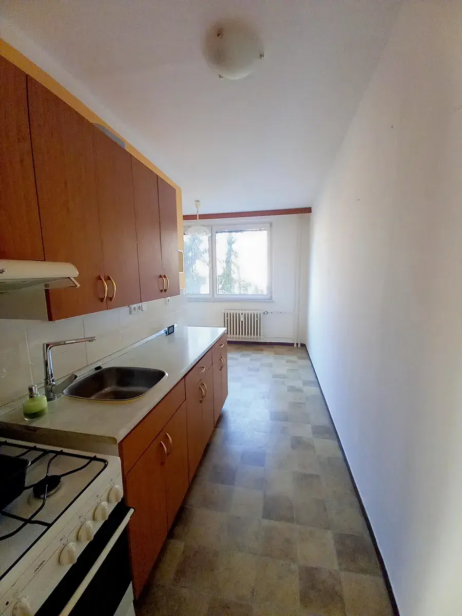 V bytě je nově zrekonstruovaná koupelna s toaletou a plastová okna s vnitřními žaluziemi.