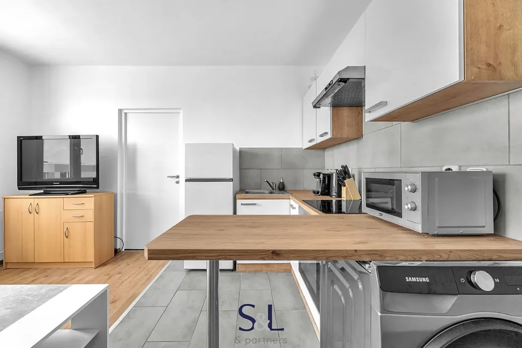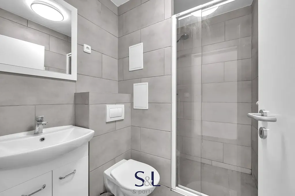 Dispozice bytu je tvořena předsíní, ložnicí, vkusně zrekonstruovanou koupelnou se sprchovým koutem a kuchyní, která je spojena s obývacím pokojem. Byt prošel kompletní rekonstrukcí.