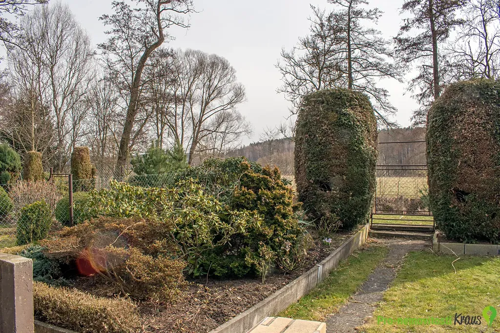 Pozemek o celkové ploše 224 m² je orientovaný na jih směrem k potoku, místo je tedy slunné po celý den. I přes bezprostřední blízkost potoka se vzhledem k vyvýšenému břehu nejedná o záplavovou oblast. Vlastník může k volnočasovým aktivitám využívat i volně přístupný pozemek u potoka. Zahrada se záhony a skleníkem má dobře využitelný tvar. Parkování možné na příjezdové obecní komunikaci, případně by bylo možné zřídit parkování na vlastním pozemku.