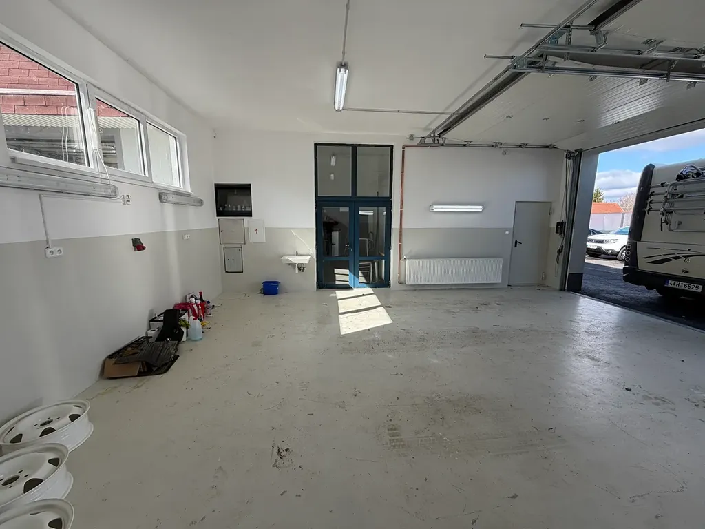 Nabízený prostor je vhodný např. pro autodílnu, dílnu, zázemí firmy, sklad nebo čištění interiérů vozidel apod. Prostor má půdorysný rozměr 6,8 x 7,7m. Celková plocha pronajímaných prostor činí 52 m². Světlá výška prostor 3,3 m, vlastní vstup + 2x vrata o rozměru: šířka 2,5 m, výška 2,9m. Uvnitř jsou kompletní rozvody elektřiny, osvětlení, vody a ústředního vytápění. Možnost částečného využití také venkovní plochy před dílnou pro parkování vozidel. Prostory jsou připraveny k okamžitému nastěhování. Cena nájmu v sobě nezahrnuje náklady na energie – voda, topení a elektřina (v prostorách jsou osazena podružná měřidla).