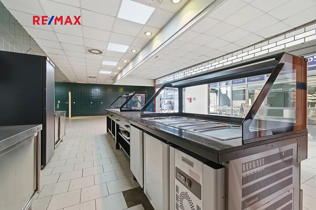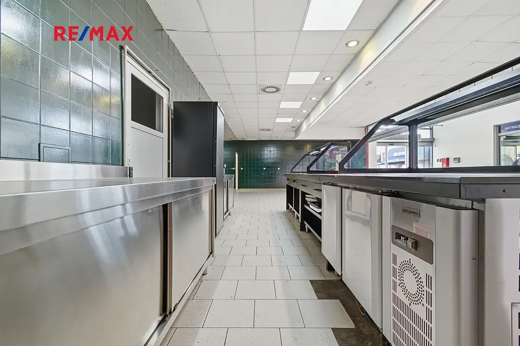 Prostor je ideální pro bistro, rychlé občerstvení či jiný gastro provoz.