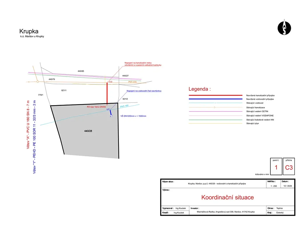 Pozemek kdysi sloužil, jako tenisový kurt, který už není léta využíván. Byla podána a schválena žádost o jeho připojení na elektrickou soustavu a byla k němu zpracována projektová dokumentace pro připojení k vodovodnímu a kanalizačnímu řádu viz. příloha foto.