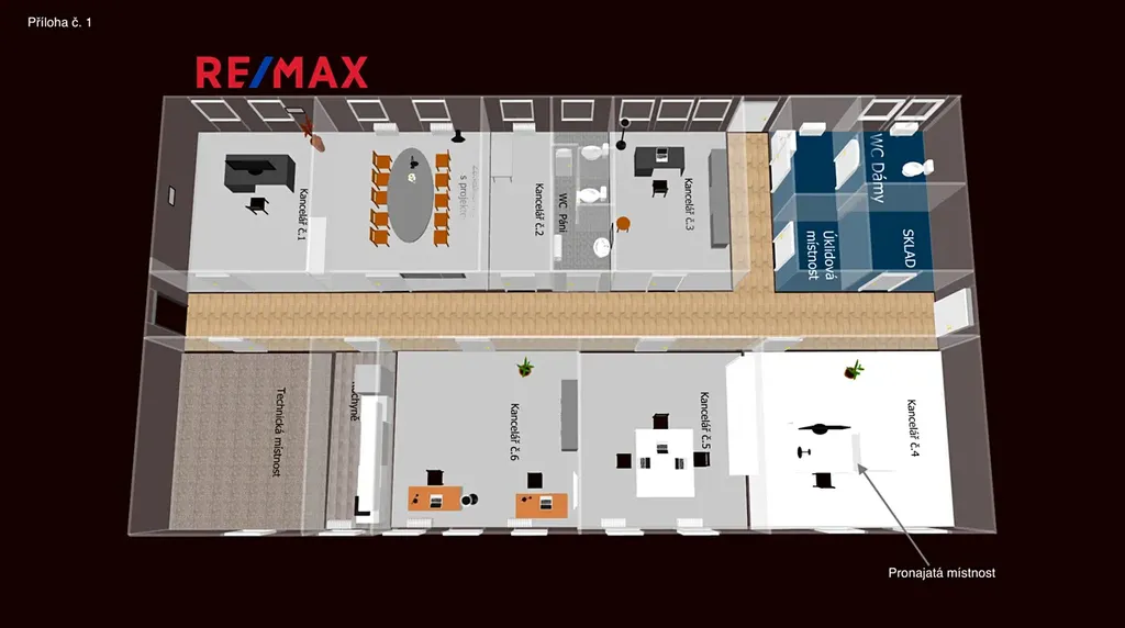 Dovolujeme si Vám nabídnout pronájem kanceláře č. 4 v Chlumci nad Cidlinou, ulice Rooseveltova. Kancelář o velikosti 18 m² se nachází v 1. nadzemním podlaží a je vybavena klimatizací. K dispozici jsou dámské a pánské toalety, kuchyňka a bezplatné parkování přímo před budovou, takže zaparkujete pohodlně a bez starostí. Měsíční nájemné činí 3 500 Kč a zálohy na služby jsou rovněž 3 500 Kč, kde je zahrnuto teplo, elektřina, internet a úklid společných prostor. Vratná kauce je stanovena na 7 500 Kč. Na patře se nachází celkem 7 kanceláří, což vytváří příjemné a klidné pracovní prostředí. Kancelář je volná ihned. Na domě již proběhlo zateplení a v nejbližší době se bude dokončovat nová fasáda, která dodá objektu svěží a moderní vzhled. Pro více informací nebo domluvu prohlídky mě neváhejte kontaktovat. Pronajímající si vyhrazuje právo vybrat nájemce na základě jím zvolených kritérií.