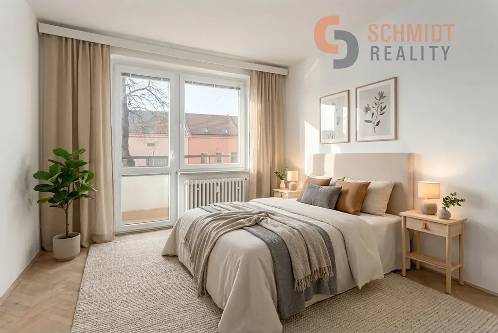 Velkou výhodou bytu je jeho velkorysá dispozice, která poskytuje dostatek prostoru pro rodinné bydlení. Součástí bytu jsou také dva balkony, každý s plochou 4,4 m².