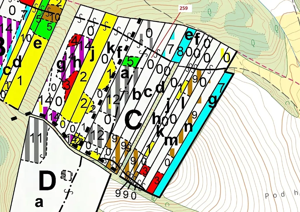 Lesní pozemek o výměře 6 645 m2, parcelní číslo 259, podíl 1/1, katastrální území Vícenice u Dolních Lažan, obec Vícenice, obec s rozšířenou působností Moravské Budějovice, okres Třebíč, Kraj Vysočina. .