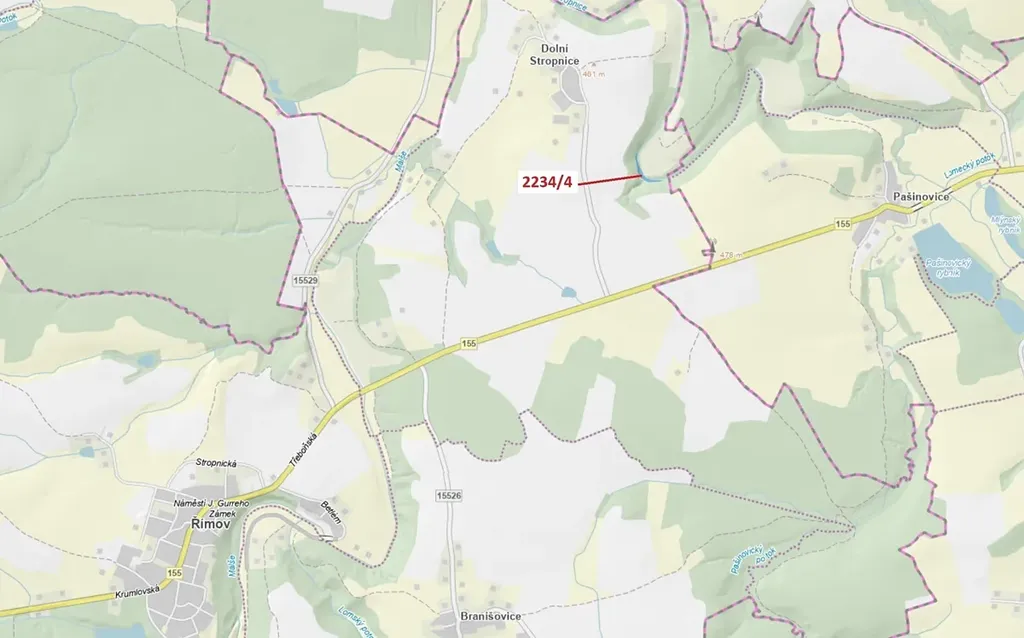 Vodní plocha o výměře 1687 m2, parcelní číslo 2234/4, podíl 1/1, katastrální území Dolní Stropnice, obec Římov, obec s rozšířenou působností České Budějovice, okres České Budějovice, Jihočeský kraj.