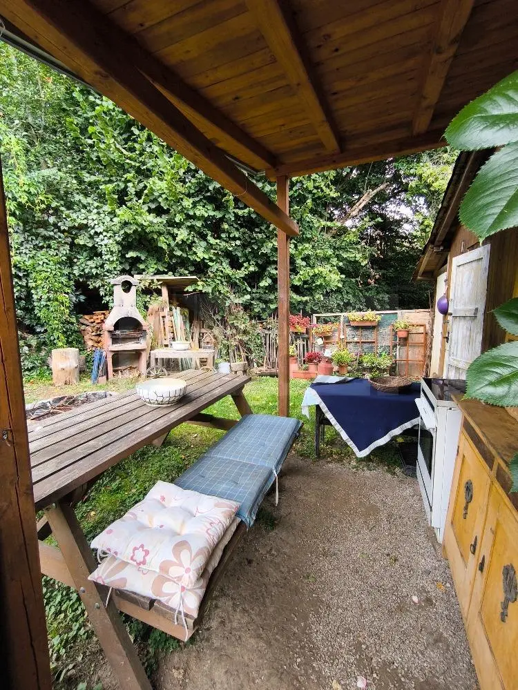 Na zahradě je 10 ovocných stromů, 10 keřů angreštu a rybízu, jezírko a 5 zvýšených záhonů. Dále je zde přistavěný skleník 3x1 m..