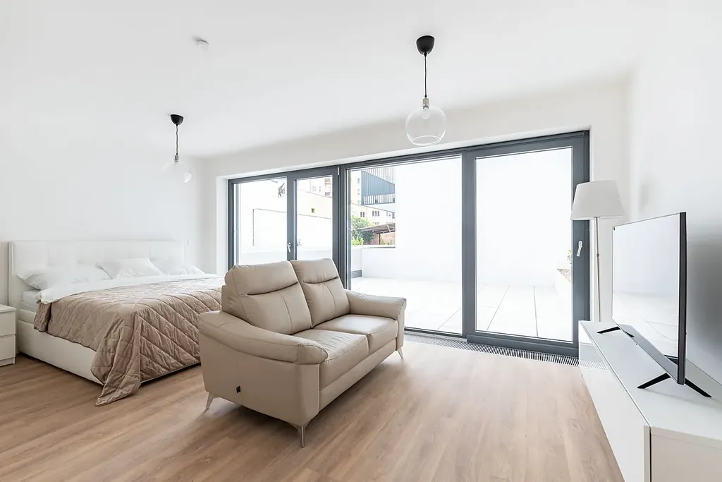 Nabízíme nadstandardní slunný byt 1+kk k pronájmu přímo v centru Brna v novostavbě Rezidence Central Park Brno, o užitné ploše 41 m², s výjimečnou soukromou terasou o velikosti 36 m², orientovaný k západu do klidného vnitrobloku.