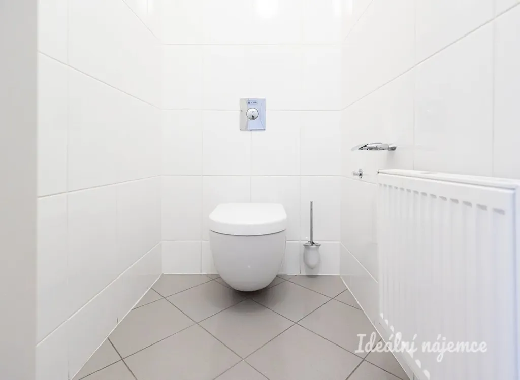 Druhá koupelna je zařízena toaletou, pračkou a sušičkou.