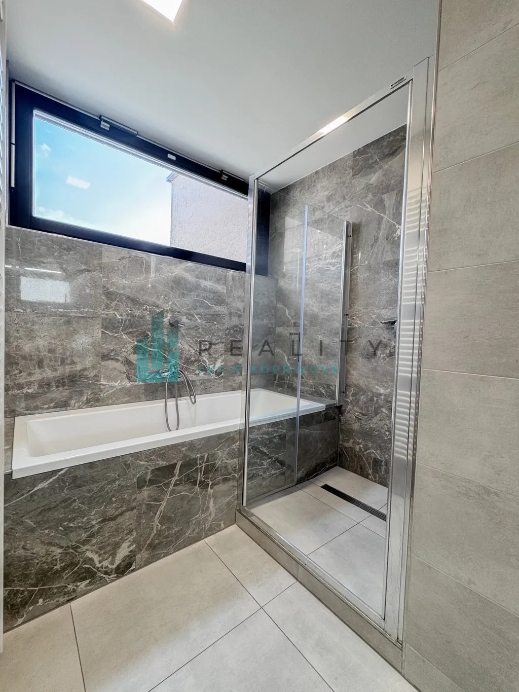 Srdcem domu je velkorysý obývací prostor s designovou kuchyní na míru, která díky ostrůvku přirozeně odděluje kuchyni s děním v obýváku. Tři samostatné ložnice zajistí soukromí každému členovi rodiny, zatímco technické zázemí a šatna vyřeší všechny úložné prostory.