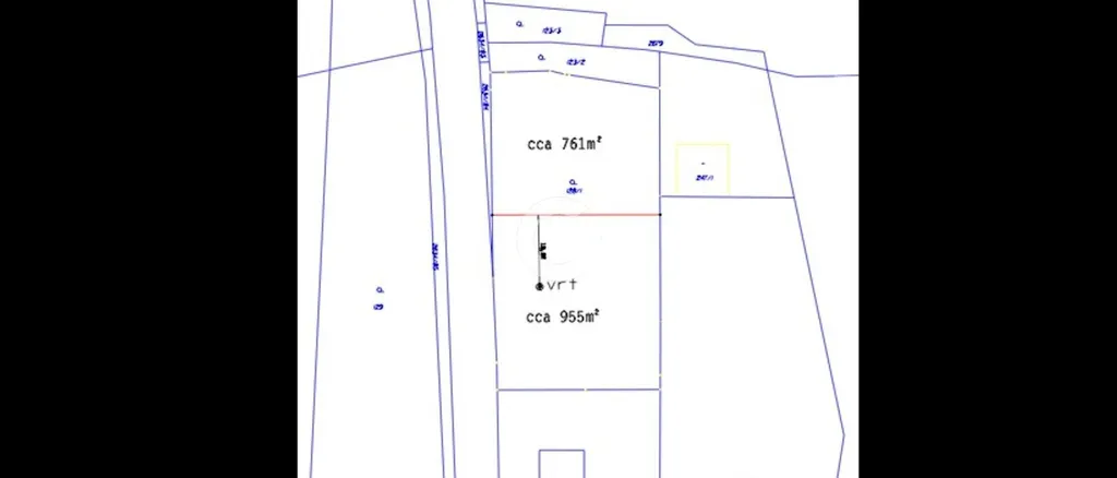 Nově je zde také možnost odkoupit pouze část pozemku o výměře 955 m² dle geometrického zaměření, a to za cenu 1 590 000 Kč včetně provize.