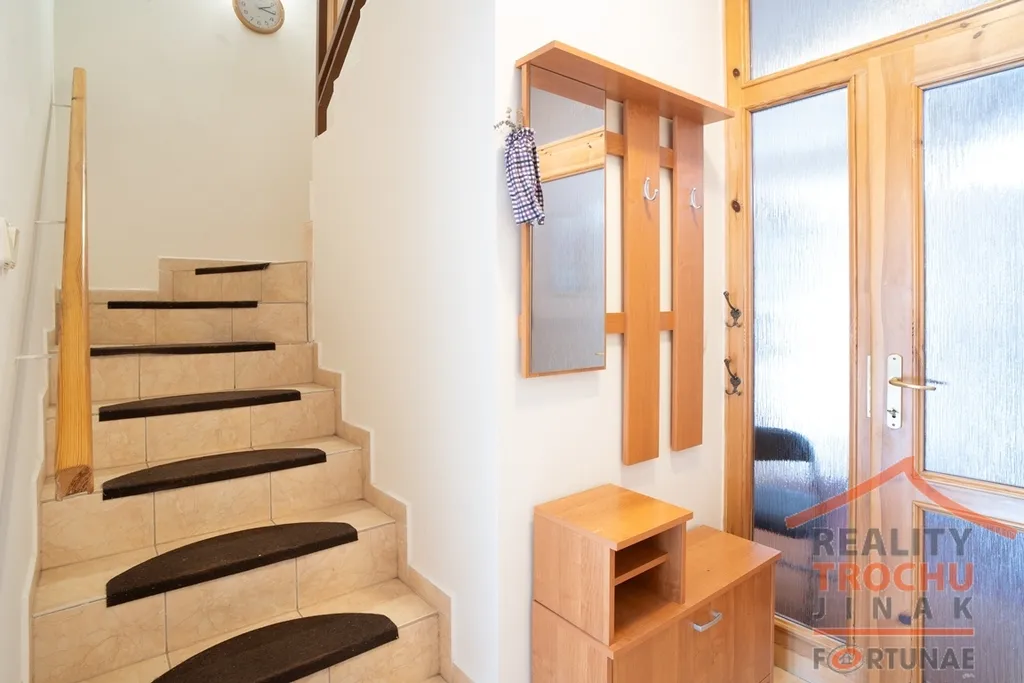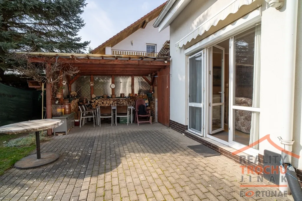 Nabízíme k prodeji patrový rodinný řadový dům s obytným podkrovím v obci Předměřice nad Labem. Rodinný dům je zděný se sedlovou střechou. Na pozemku je pergola s posezením. Součástí domu je garáž. Vytápění nemovitosti – ústřední topení – plynový kotel a lokální krbová kamna v 1.NP. Plocha pozemku činí 522 m², užitná plocha 114 m². Dům je napojen na kanalizaci, vodovod, plyn, elektro 230/400V, na střeše jsou fotovoltaické panely k ohřevu teplé vody. Podlahy: keramická dlažba, PVC, dřevěné a koberce.