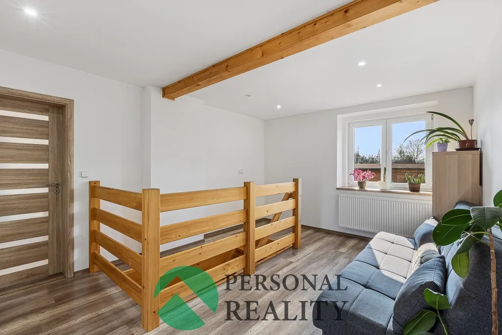Nové, prostorné a nízkonákladové bydlení. Moderní styl, po vesnicku. Jak vidíte, dům je ihned obyvatelný, po zdařilé rekonstrukci. Po vstupu vidíte příjemnou šatnu a vlevo sklad na potraviny. Vejdete hned do velké plně vybavené kuchyně spojené s obývákem. Kuchyně plně vybavena s talovými kamny. Velká koupelna v přízemí. Celý tento prostor je vytápěn podlahou. Široké dřevěné schodiště, které nevrže! V patře hala, ložnice, dětský pokoj, hostinský pokoj a druhá koupelna. Z chodby se dostanete na nedokončenou pavlač, která je dominantou tohoto domu. Pozemek rovinatý, kompletně oplocený s dvěma příjezdy. Velká garáž s dílnou a chlapskou trucovnou. Venkovní posezení hned vedle prý nevyčerpatelné studny. Místnost technickým zázemím tepelného čerpadla s bojlery. Mohl bych toho napsat ještě stohy, ale to nemá cenu. Dům je parádní, přijeďte se podívat.