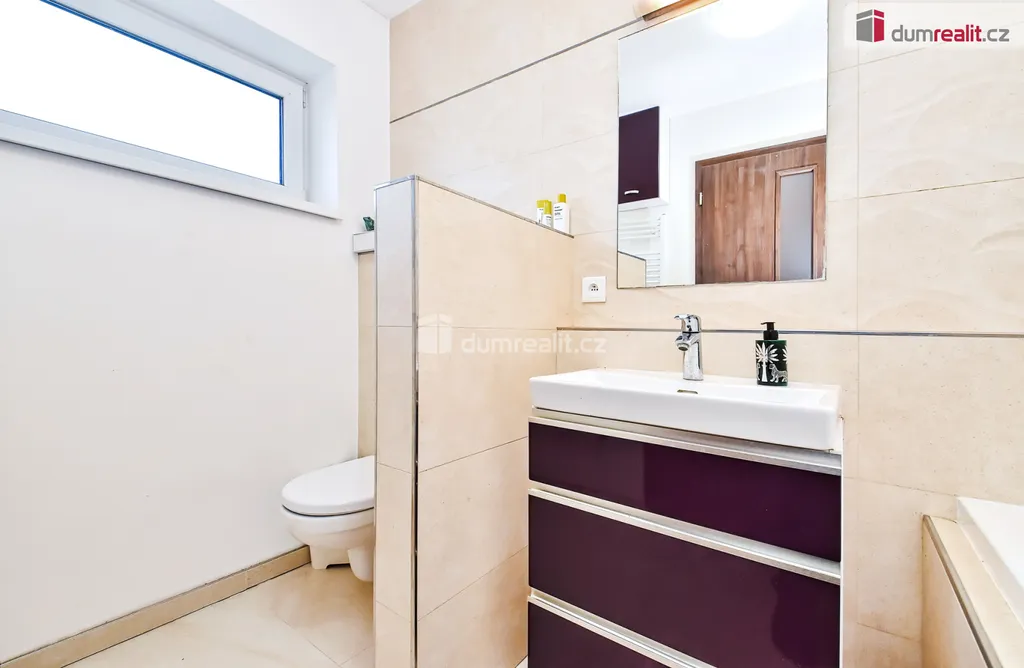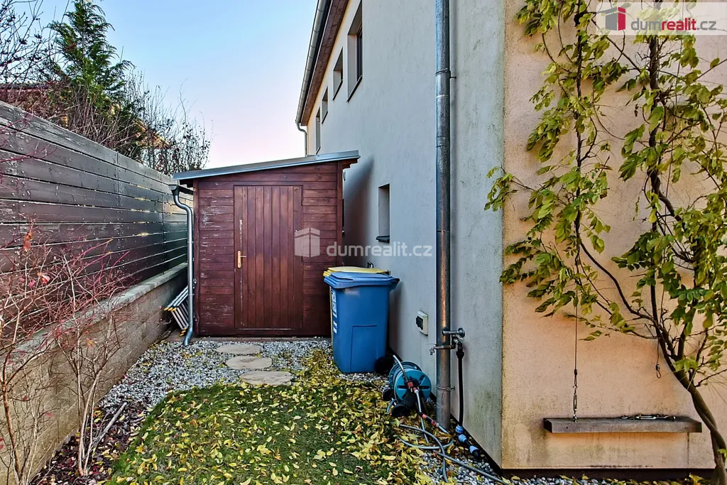 Prodej rodinného domu o dispozici 4+kk, s krásnou zahradním architektem navrženou zahradou, na které se nachází jak zastřešené posezení pro větší rodinu, tak okrasnou zahradu, která je pohledově z obývacího pokoje. Dále dvě parkovací stání za dálkově ovládanými vraty, tak i za domem dřevěný domek pro zahradní nábytek a potřeby na zahradu. Dům je velmi dobře architektonicky řešený, s mnoha vynikajícími detaily, které tento dům dělá velmi osobní a unikátní. V přízemí domu se nachází předsíň, ze které se jde dále do obývacího poje s kuchyňským koutem, dále do koupelny se sprchovým koutem a WC, a technické místnosti ve které se nachází plynový kotel, pračka se sušičkou a dostatkem prostoru pro úklidové prostředky. Po schodech, které neprochází žádnou místností, tudíž jsou nerušící, mají zajímavé podsvětlení, se jde do patra, kde se nachází velká koupelna s vanou a WC, prostorná šatna, kterou jistě oceníte, dále tři samostatné pokoje. Celý dům působí vzdušně a prostorně, i díky zajímavým osvětlením, členěním a praktičností. Orientace domu je na jih, západ a sever. Obývací pokoj s kuchyňským koutem a dále dva pokoje v patře jsou na jih, jeden pokoj v patře je na západ a koupelny a technická místnost jsou na sever. Hezký je výhled z obývacího pokoje na krásnou udržovanou zahradu, se zabudovanou automatickou závlahou. Tento dům Vám opravdu doporučujeme, je velmi praktický a dělaný se vkusem. Ev. číslo: 655019.