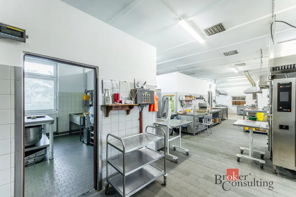 Velkou předností nemovitosti je rozsáhlá profesionální kuchyně ve velmi dobrém technickém i hygienickém stavu, vybavená gastronomickou technologií, nerezovými pracovními plochami, varnými bloky, konvektomatem a digestořemi. Součástí je také kompletní zázemí včetně přípraven, skladů a velkého chladicího boxu.