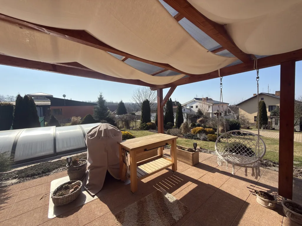 K domu náleží pozemek o celkové výměře přibližně 1 338 m², který poskytuje dostatek prostoru pro odpočinek i dostatečné soukromí. Na zahradě se nachází bazén a okrasné jezírko, které dotváří příjemnou atmosféru celého místa.