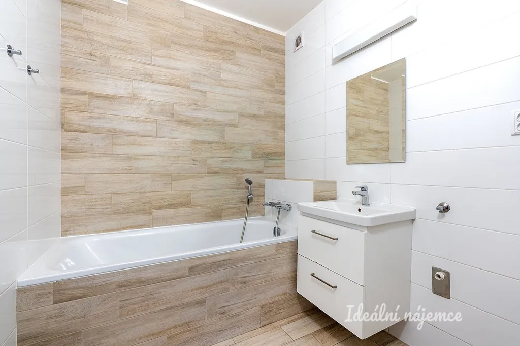 Byt je částečně vybavený a připravený k nastěhování. Kuchyň je zařízena spotřebiči – k dispozici je lednice, myčka nádobí, elektrická trouba, elektrická varná deska s digestoří.