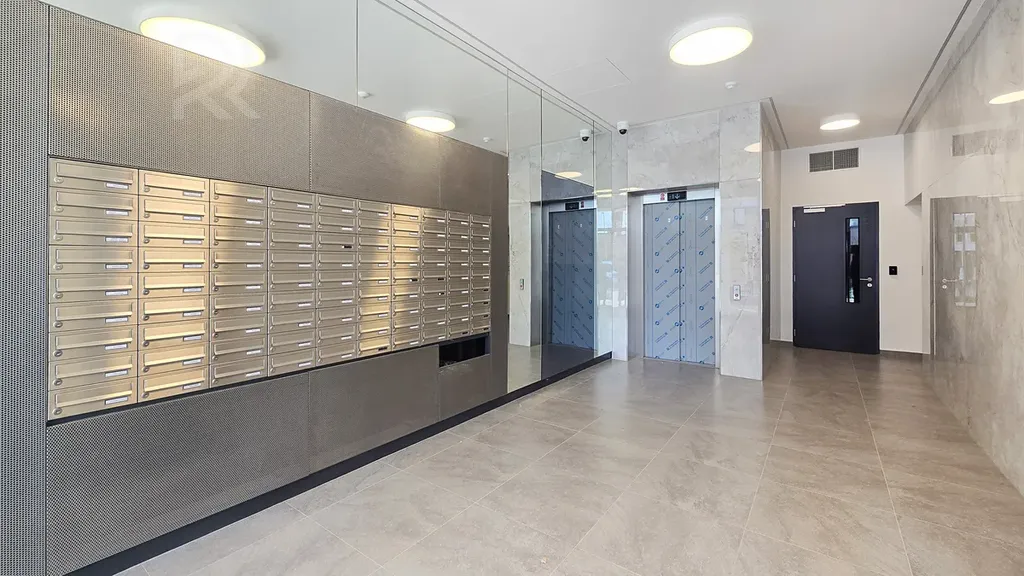 Kromě bytu bude nájemníkovi k dispozici vyhrazené parkovací stání v garáži domu. Pro obyvatele je navíc připravena velká kolárna s držáky na kola a kočárkárna. Celý dům je na čipový systém.