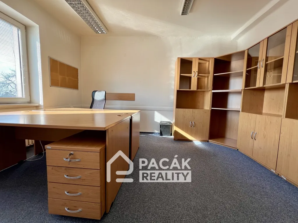 V rámci budovy připojení k internetu, kuchyňka a WC. Kancelář se pronajímá vybavená nábytkem.