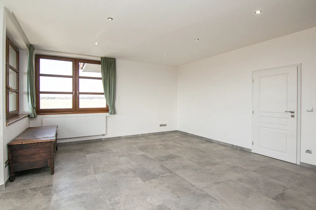 V přízemí se nachází prostorná předsíň s komorou pod schodištěm. Dispozice bytu je praktická a díky velkoformátovým oknům je celý prostor nádherně prosvětlený s výhledy do okolní přírody.
