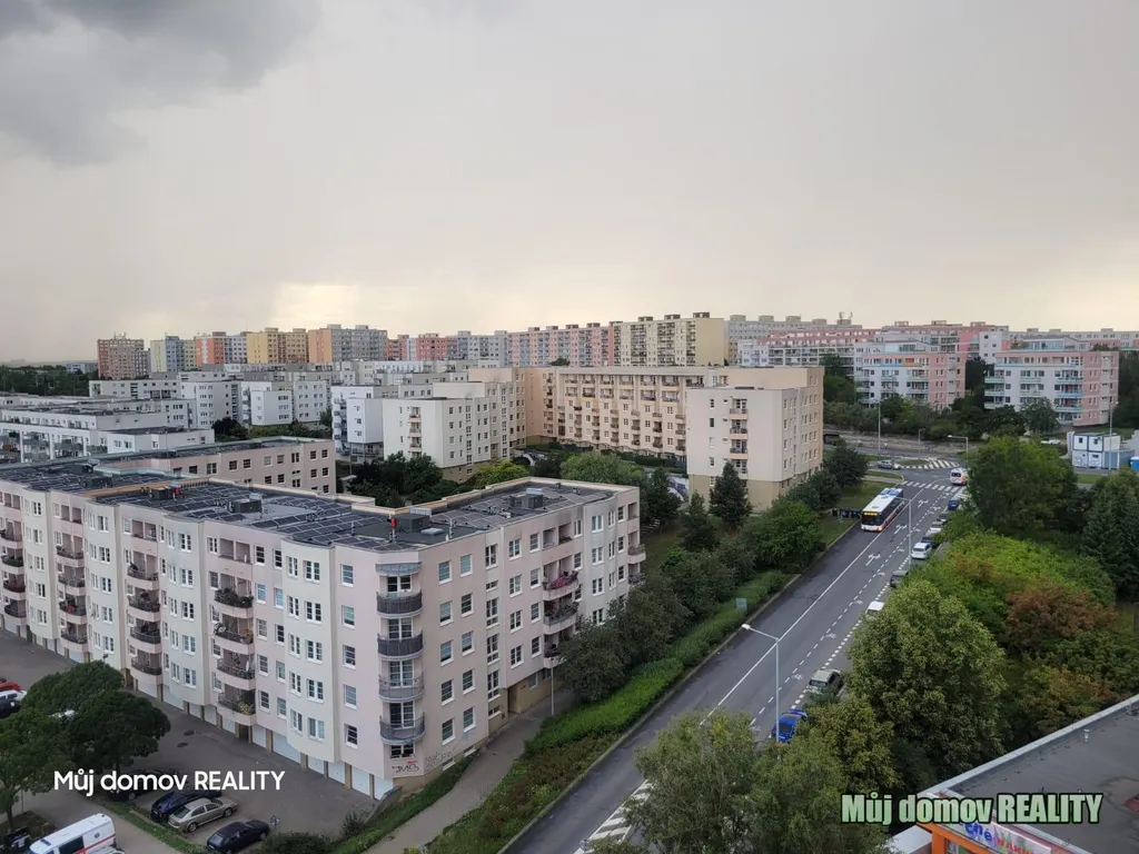 Nabízíme k pronájmu světlý a praktický byt 2+kk v 10. patře panelového domu s výtahem. Byt má výměru 44 m and sup2; a k němu náleží sklepní kóje o velikosti 1,5 m and sup2;.