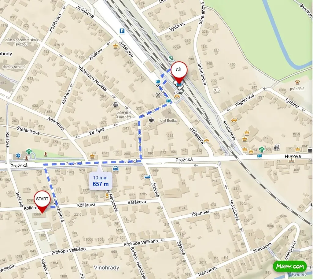 Doprava: Vlak 10 min chůze (25 min na Masarykovo nádraží)