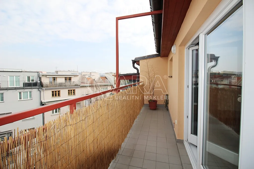 Komfortní podkrovní byt 1kk, 31 m2 s terasou 9 m2 do vnitrobloku, v 7. patře cihlového domu po rekonstrukci s výtahem. Světlý obývací pokoj s plně vybaveným kuchyňským koutem s myčkou, zařízeno nábytkem na míru, velká šatní skříň, dřevěná postel se zdravotní matrací a úložným prostorem, plovoucí podlaha a dlažba, koupelna s vanou, wc a bidetem, dřevěná eurookna, Technická místnost s pračkou, plynovým kotlem a úložným prostorem, kvalitní bezpečnostní dveře, internet, kabelová tv, posezení na společné zahradě. Byt se nachází v klidné lokalitě s veškerou občanskou vybaveností a výbornou dostupností do centra. Majitelé preferují dlouhodobý pronájem jedné pracující profesionální osobě s referencemi. Komfortní a světlý byt s příjemnou atmosférou. Doporučujeme.