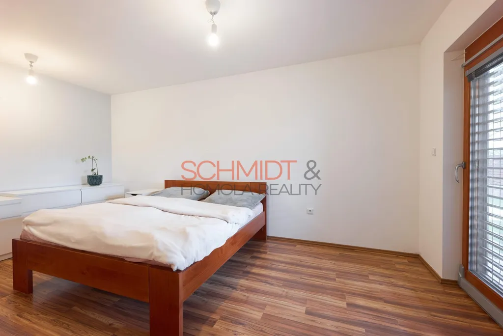 prostorný obývací pokoj spojený s jídelnou a kuchyní se vstupem na terasu, na kterou se dostaneme také z hlavní ložnice. Dále dva dětské pokoje, koupelna s vanou i sprchovým koutem, oddělené WC, technická místnost a v neposlední řadě půdní prostor upravený na další velkou obytnou místnost. Na ni navazuje další část půdy, sloužící jako šatna či sklad.