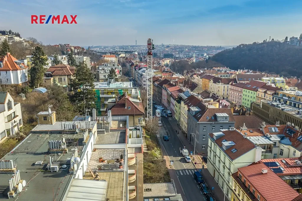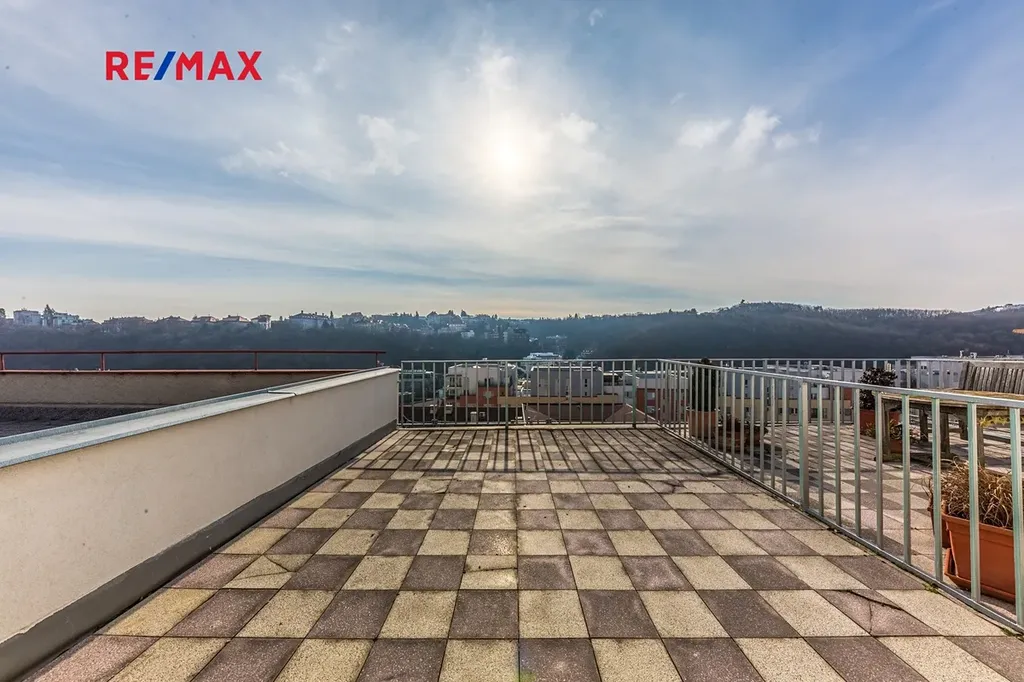 To, co ale dělá tuto nabídku skutečně výjimečnou, je bez debat nádherná terasa o velikosti téměř 20 m². Místo, které se nestává jen doplňkem bytu, ale jeho plnohodnotnou součástí. Ranní káva při východu slunce, večerní sklenka vína nad světly města, posezení s přáteli, městská zahrada, lehátka, bylinky, inspirativní pracovní kout pod širým nebem… možností je celá řada. A k tomu otevřený výhled na Prahu i protější kopce, který dává tomuto bytu atmosféru, jakou běžně nenajdete.